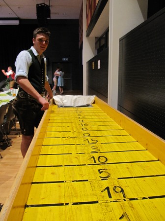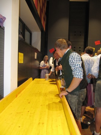 Beim Bierkrugschieben konnten die Gäste ihr Feingefühl unter Beweis stellen. Die Wahl der Herzerlkönigin und das Schätzspiel fanden auch auf unserem Ball statt. Beim Schätzspiel wollten wir wissen, wie viele Meter Bund-Draht wir in diesem Jahr verbraucht haben.