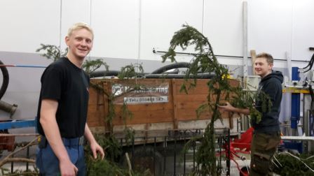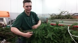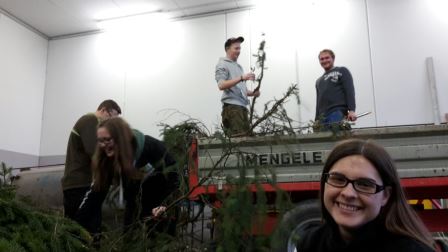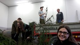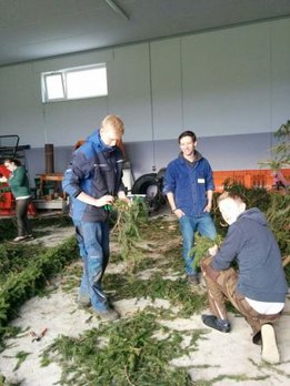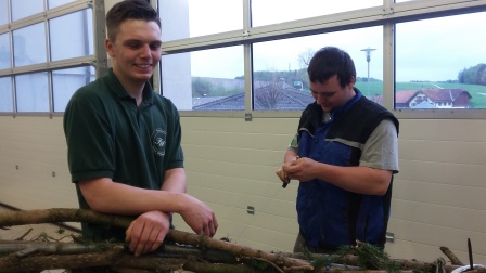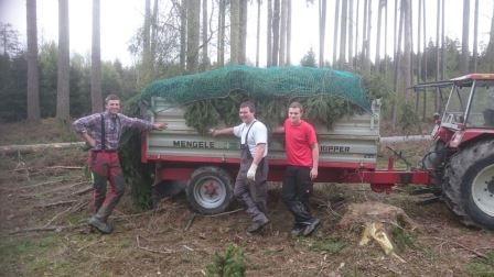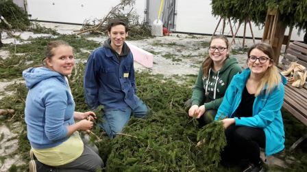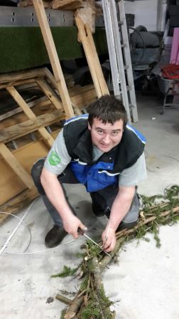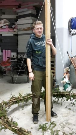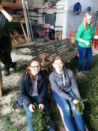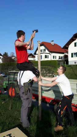 Außerdem haben unsere Männer zwei große Werbetafeln aufgestellt, die zu unserer Veranstaltung einladen. Weiters waren unsere Burschen sehr fleißig beim Sammeln der Tannenzweige zum Schmücken des Maibaumes. Am 18. und 19. April sind wir dann voll durchgestartet mit dem Binden des Maibaumkranzes sowie der Girlanden.