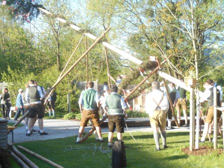 Am Freitag, den 29. April, war es dann so weit. Mit musikalischer Umrahmung und Liveübertragung im Radio und im Internet wurde der Maibaum von uns aufgestellt. Bürgermeister Johannes Ebner und viele Zuschauer aus Hallwang und Salzburg haben uns dabei fleißig angefeuert. Am nächsten Tag gab es einen ausführlichen Fernsehbericht mit vielen Interviews in „Salzburg Heute“.